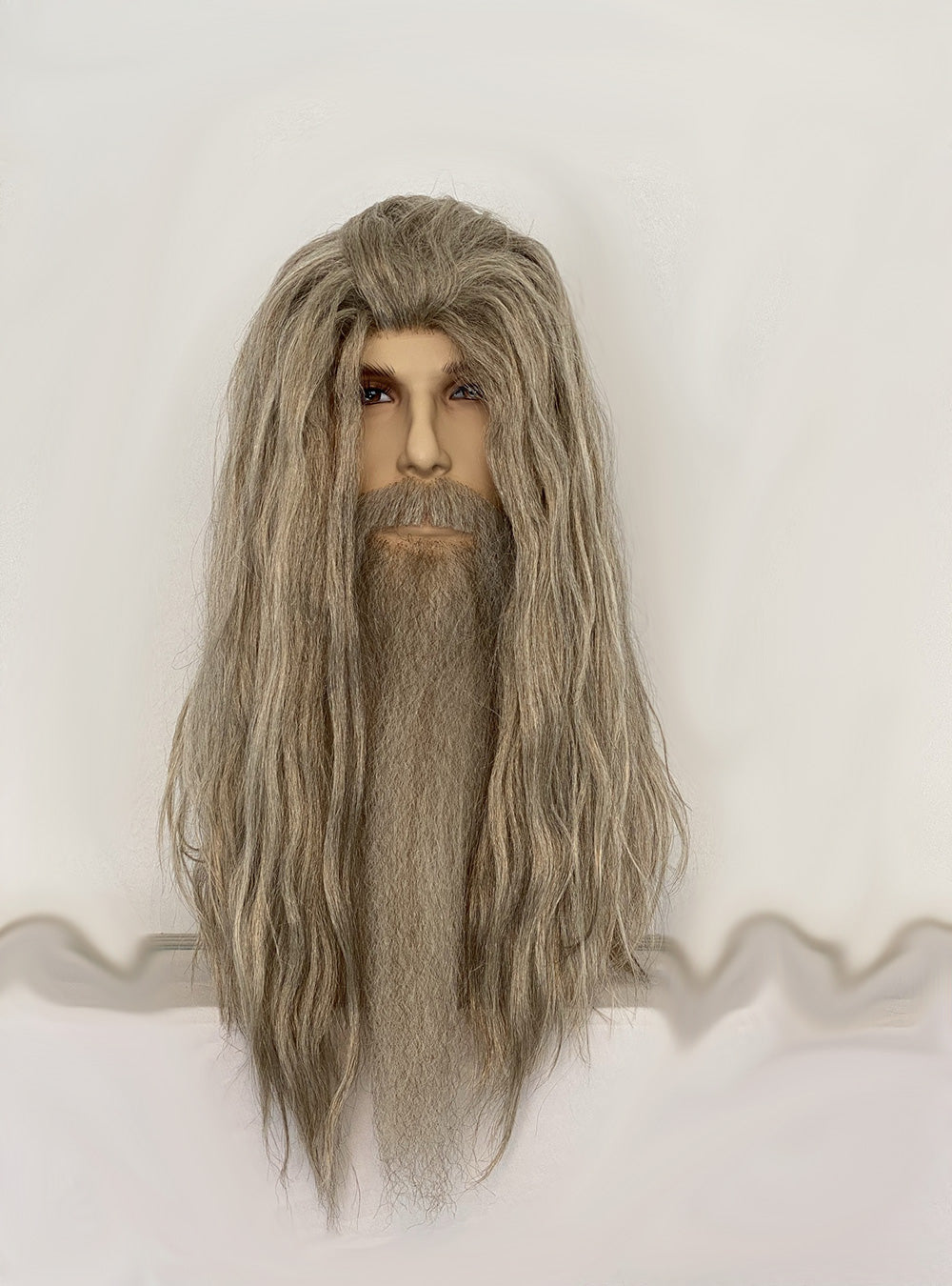Our Gandalf beard and moustache set comes with or without the Gandalf wig and is made from human hair mimicking fibre. Once fitted it becomes almost indistinguishable from naturally growing hair. The beard and moustache are fitted with beard adhesive.